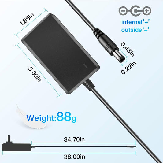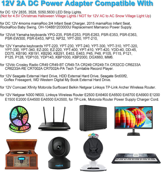 12V 2A DC Power Supply Adapter with Switch for Yamaha Keyboard, Record Player, LED Strip Lights - 100-240Vac to DC 12V 2A 24W Transformer