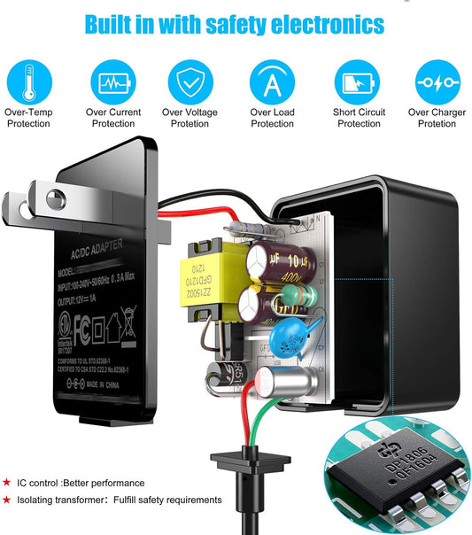 12V 1A AC Adapter Charger Replacement with 8 Tips - Regulated Power Supply for LED Strip Light, CCTV Camera, GPS - ETL Certified Transformer