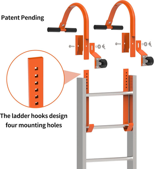 2 Pack Heavy Duty Ladder Roof Hook with Wheel Rubber Grip T-Bar - 500 lbs Weight Rating - Fast & Easy Access for Steep Roofs