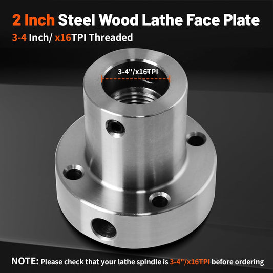 2" Steel Faceplate for HAowosi Wood Lathe Spindle - 3/4" x 16TPI Screwchuck Included