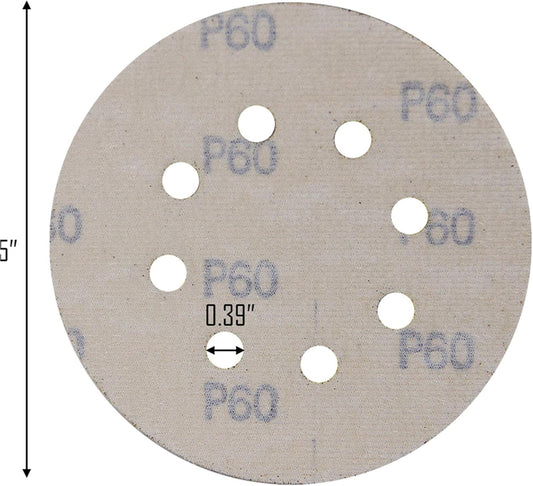 Mestool 58-AP Gold 5-Inch 8-Hole 60 Grit Dustless Hook&Loop Sandpaper 100-pack