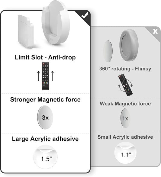 Set of 4 Magnetic Wall Mount Remote Control Holders - Self-Adhesive TV Remote Organizer for Back of TV - Upgrade Storage Solution in White Color