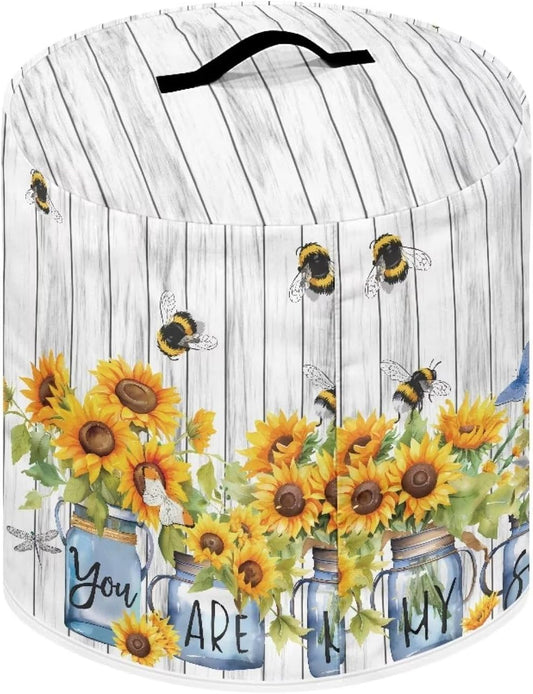 Insulated Pressure Cooker Cover for 3 Quart Appliances - Fits Rice Cooker, Air Fryer, Crock Pot - Washable Dust Cover with Pocket for Utensils and Recipes - Sunflower Vase Bee Design