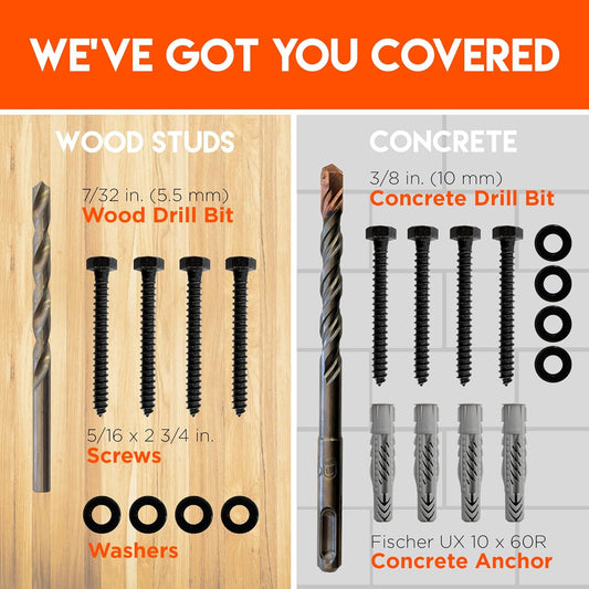 Heavy Duty Lag Bolt Kit for TV Mounting in Wood or Concrete - Includes Bolts, Anchors, and Drill Bits