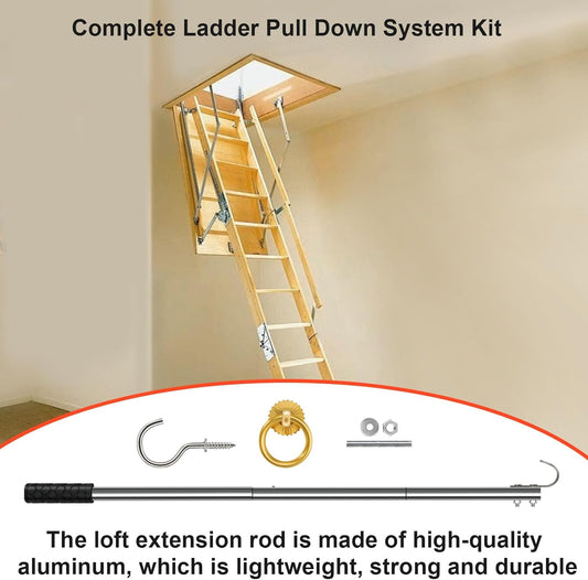 QIANXIHAORQ Complete Attic Ladder Pull Down System Kit with Extension Rod and Storage Hook