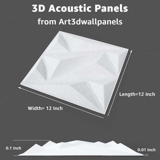 20 Pack Art3dwallpanels Acoustic Foam Panels with Tape - Soundproofing 3D Wall Panels for Sound Dampening, Absorption - 12" x 12", White