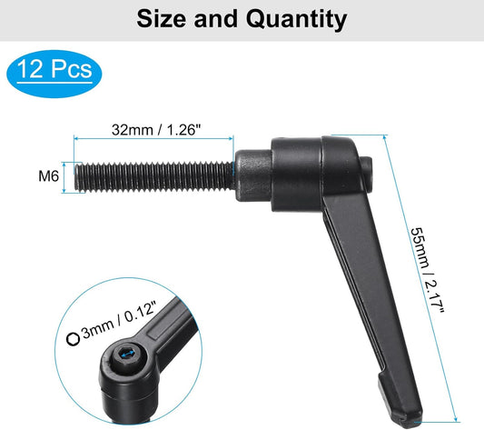 12pcs Lever Adjustable Handles M6 x 32mm Metric Male Thread for Clamping - Rotating Screw Handles with Locking Lever