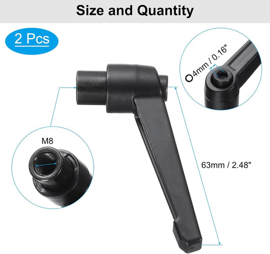 4pcs uxcell Black Clamping Lever Adjustable Handle Set M8 x 25mm Male & Female Thread Level Handles for Lathe Machinery