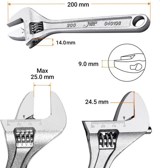 8 Inch Adjustable Wrench with Wide Caliber Opening - Professional Shift Spanner by Jetech