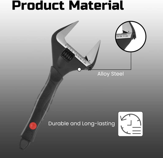 Adjustable 10-Inch Plumbing Wrench with Wide Jaw Opening, DURATECH CR-V Steel, SAE/Metric Scale, Ergonomic Handle