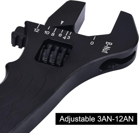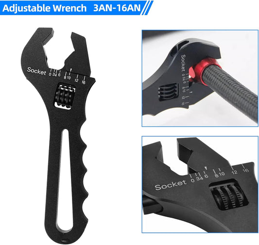 Adjustable Aluminum AN Fitting Wrench 3AN-16AN Spanner Tool for Hose Fitting Adapter, Lightweight Black