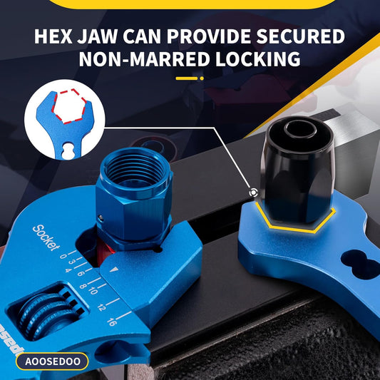 Adjustable AN Fittings Wrench Tool for Hose Fitting Adapters, Lightweight Aluminum Black, 3AN-16AN, with Double Hose End Fitting Wrench Blue - AOOSEDOO
