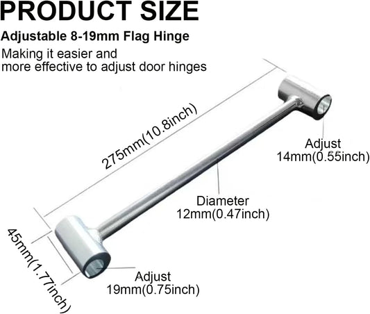 Adjustable Steel Door Hinge Repair Tool for Round Bolts (0.315-0.75in) - Double-ended Wrench for Heavy-duty Gap Adjustment