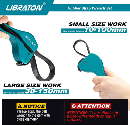 Adjustable Strap Wrench Set for Oil Filters and Jars - 2-Piece Universal Rubber Strap Wrench Kit for Multifunctional Use