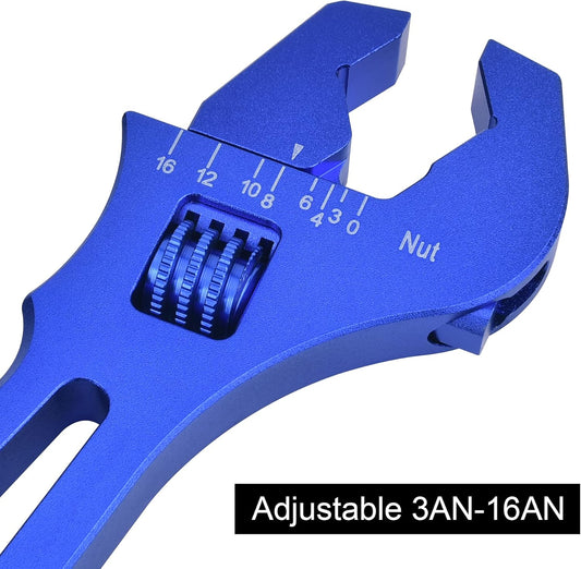 Adjustable AN Fittings Wrench Set with Double Hose End Fittings Wrench - Lightweight Aluminum, Blue - AN Tool for Hose Fitting Adapters 3AN-16AN
