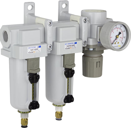 Industrial Grade 3 Stage Filter Regulator Coalescing Desiccant Dryer System for Compressed Air Lines, Metal Bowls, Paint Spray, Plasma Cutter - 1/2" NPT with Auto Drain