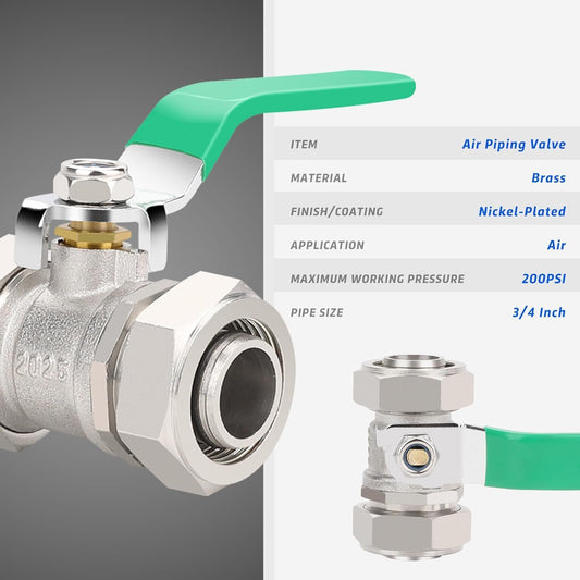Brass Ball Valve for 3/4'' Air Piping System in Shop Garage - Shut-Off Fittings for Compressed Air Line