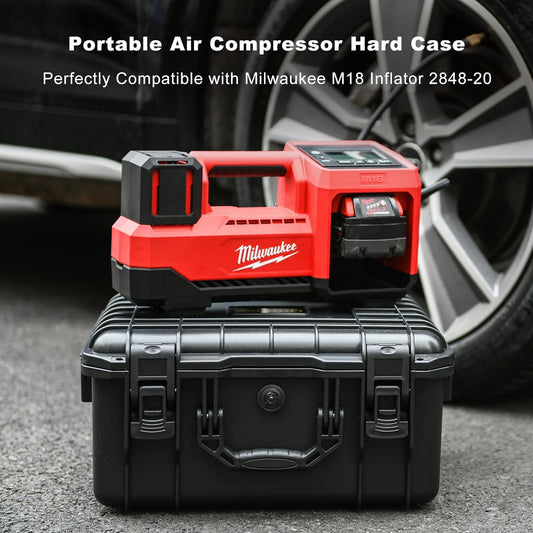 Waterproof Hard Case for Milwaukee M18 Inflator 2848-20 - Storage Holder for Battery Pack 18V 3.0 to 6.0 Ah - Black