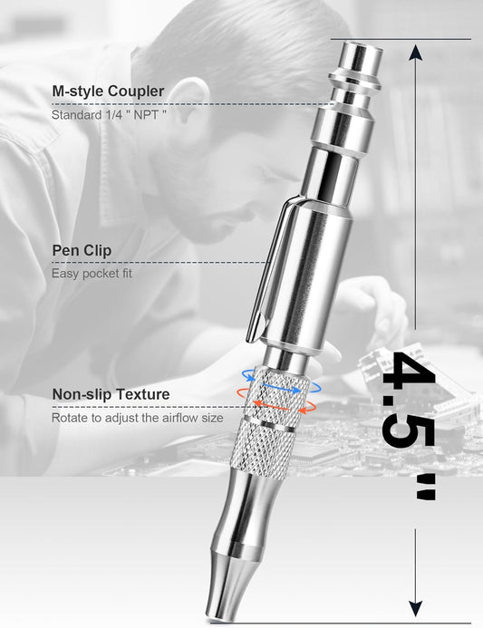 Adjustable Pocket Air Blow Gun 2-Pack with "M" Quick Plug, 150 PSI Max for Dust Cleaning - Industrial Style Pen