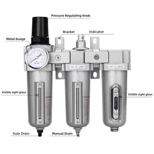 Industrial Grade 3 Stage Air Drying System - 3/4" NPT, Particulate Filter, Coalescing Filter, Desiccant Dryer, Air Regulator, Metal Bowl, Auto Drain - Ideal for Paint Spray & Plasma Cutter