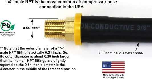 Lead-Free Brass 1/4" Male NPT Short Air Compressor Hose with 1/4" Male NPT Connections - 21 Inches