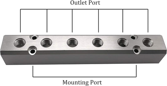 NACX 6-Way Pneumatic Manifold with G1/2 Supply Port and G1/4-Inch Output Port, Made of Aluminum Alloy
