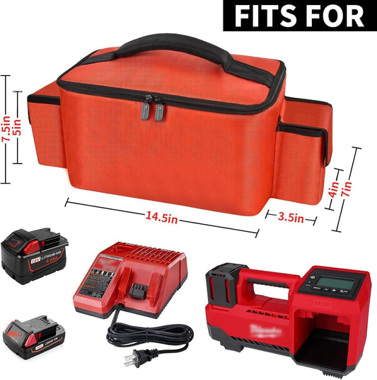Red Air Compressor Bag for Milwaukee M18 Inflator 2848-20/2771-20- Storage Case for 18V Milwaukee Tools with Battery Holder - Compatible with 3.0/4.0/5.0/6.0/6.5/7.0/8.0Ah.