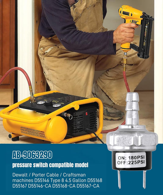 Replacement Micro Pressure Power Switch for Dewalt, Porter Cable, Craftsman Machines - AB-9063290 - Compatible with D55146, D55168, D55167 Models - 180-225 PSI Air Compressor Parts