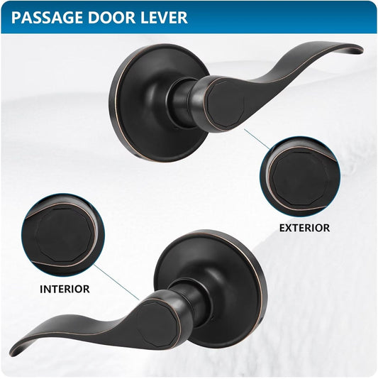 1 Pack Oil Rubbed Bronze Wave Handle Lever for Keyless Passage Doors - Reversible for Left/Right Handed Doors - Non-Locking Set for Corridor/Hall/Closet/Wardrobe