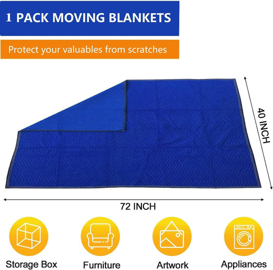 1 Pack UDAREIT 40x72in Heavy Duty Moving Blankets - Professional Quilted Furniture Blankets for Shipping and Protecting Furniture