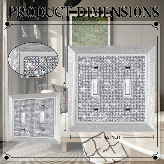 1 Pcs Double Gang Toggle Switch Wall Plate with Shiny Rhinestones and Imitation Wood Grain Design - Decorative Outlet Cover Plate for Light Switches by Gaocai