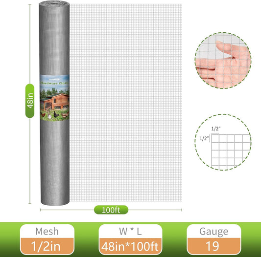 1/2 inch 48" x 100' 19 Gauge Hardware Cloth Wire Mesh Roll for Chicken Coop, Garden, and Poultry Netting