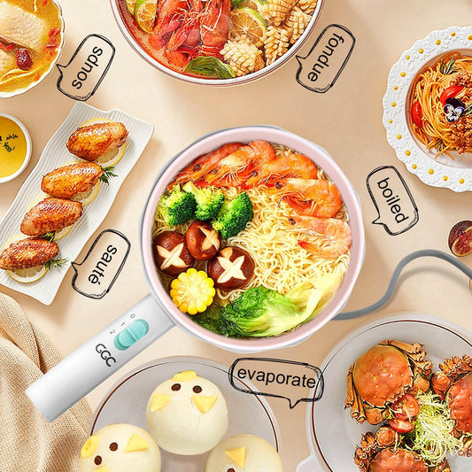 1.5L GGC Electric Hot Pot with Steamer for Cooking Ramen, Steak, Fried Rice, Oatmeal, and Soup - Portable Cooker for Dorms - Power Adjustable