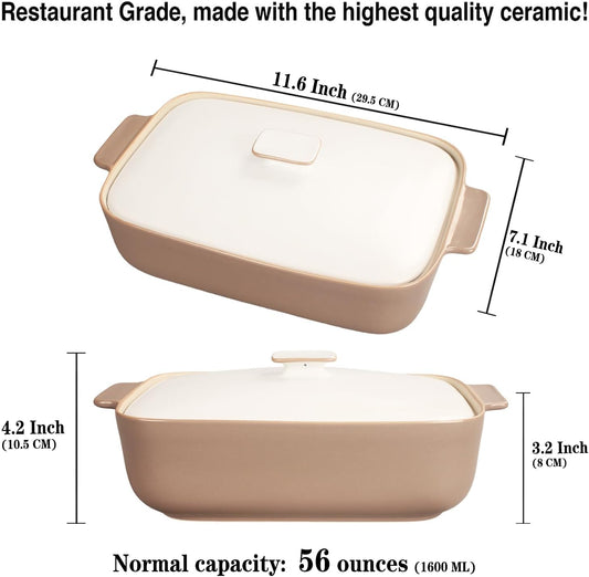 1.7 Quart Stoneware Casserole Dish Set with Lids - Microwave, Oven, and Dishwasher Safe