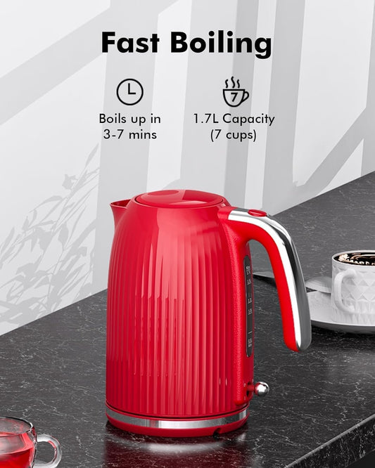 1.7L Electric Kettle with Quick Boil, 1500W, BPA-Free, Auto Shut Off, Boil Dry Protection, Easy Clean, Red