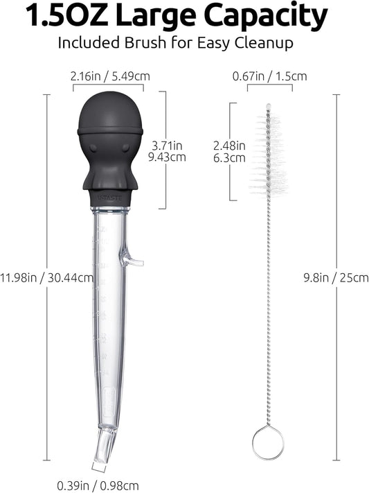 1.5oz Heat Resistant Angled Turkey Baster Set with Cleaning Brush - Food Grade Tritan/Silicone, Large Octopus Bulb, for Basting Meat/Poultry - Black