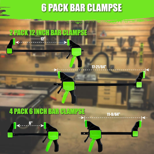 10-Pack Wood Clamps, 12" and 6" Bar Clamps for Woodworking - F Clamps with 150 LBS Load Limit, One-Handed Clamp/Spreader for DIY