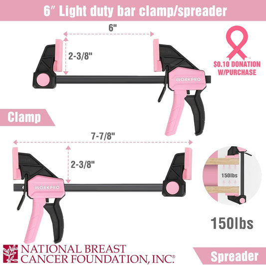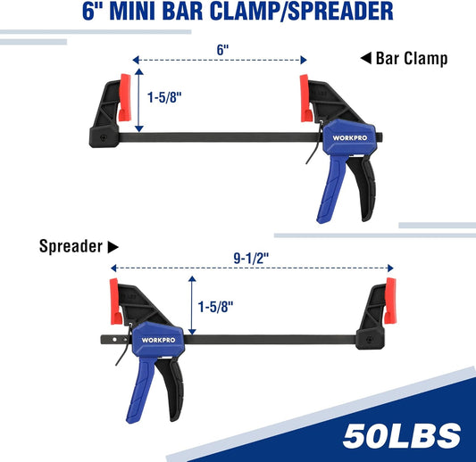 WORKPRO Mini Bar Clamps Set - 6" and 4-1/2", 4-Piece One-Handed Clamp/Spreader for Woodworking - Light-Duty F Clamp with 150lbs Load Limit