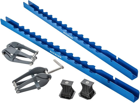 Adjustable 4-Way Pressure Steel Clamps for Table & Benchtops - Rockler Deluxe Single Panel Clamps with Scissor Couplers - Ideal for Flat Panels & Flush Joints - Includes Clamp Rails & Feet