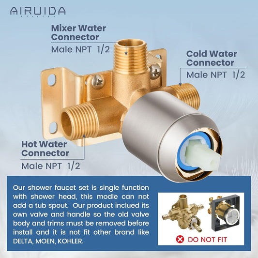 Airuida Bathroom Rain Shower System with Stainless Steel Single Handle Faucet Kit, 6 Inch Wall Mount Head - Brushed Nickel