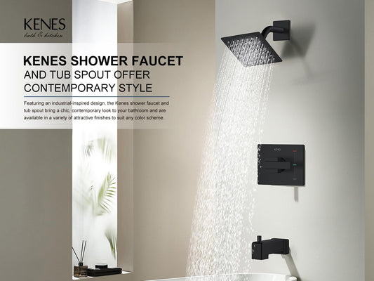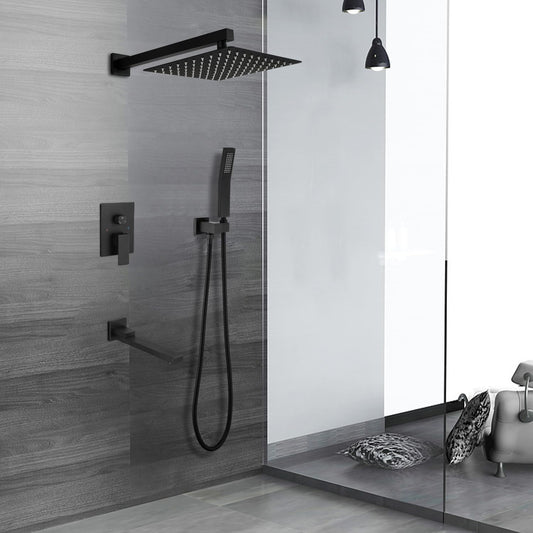 Modern Matte Black Shower Faucet and Tub Trim Kit with Single-Spray Square Black Rain Shower Head - Includes Shower Valve