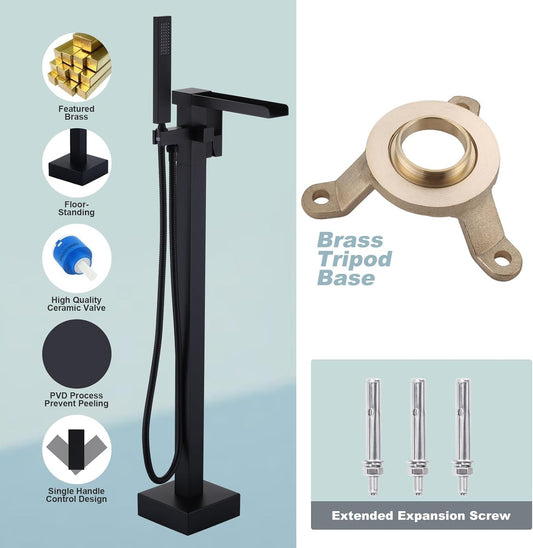 Matte Black Freestanding Tub Faucet: ALEASHA High Flow 6.74 GPM Tub Filler with Handheld Shower for Elegant SPA Experience