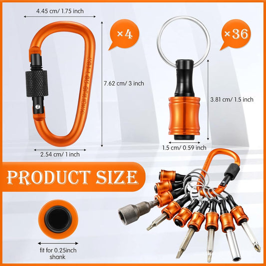 36-Piece Locking Bit Holder Keychain Set with 3 Socket Drill Bit Holders and 105° Screw Adapters in Orange Color