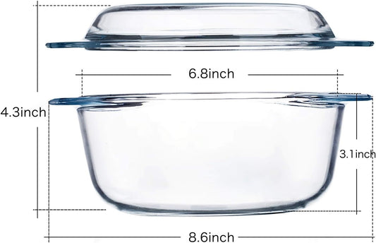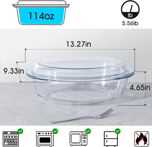 Glass Oval Casserole Dish with Lid and Handles, Covered Baking Bowl Cookware Set (3.4 QT)