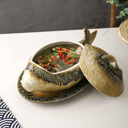 Halloween Fish-Shaped Ceramic Casserole Dish Set with Lid - Perfect for Special Dinners - 16x8 INCH, 3300ML/111oz