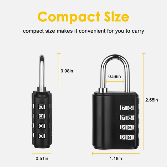 4 Digit Padlock Combination Lock for Gym, School Locker, Gate, Fence, Storage - Keyless, Resettable - Weatherproof Metal - Black