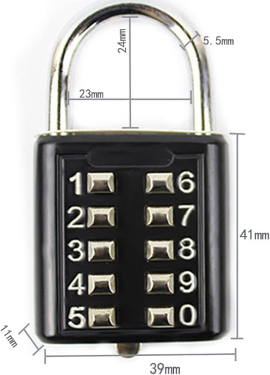Combination Lock for Gym Locker, Toolbox, Fence - Black Digital Security Padlock with Button Combination - Zeng Padlock