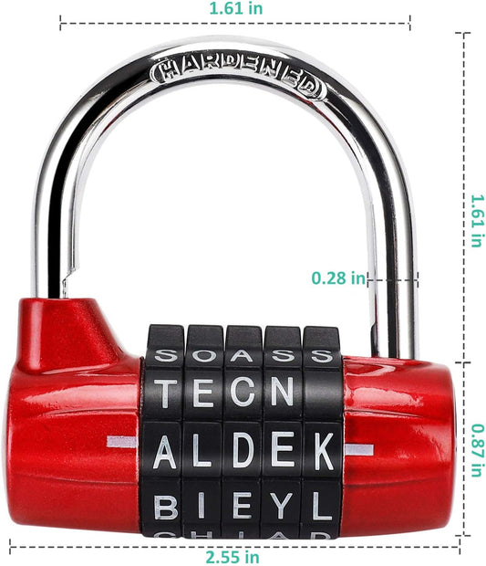 Heavy Duty Alloy Gym Locker Padlock with 5 Letter Password, Sturdy Security, Keyless Resettable Combo - Red Color