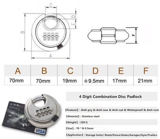 Heavy Duty Stainless Steel Combination Discus Padlock for Outdoor Use - 4 Digit (3inch) Lock for Warehouse, Sheds, Storage Locker - Silver