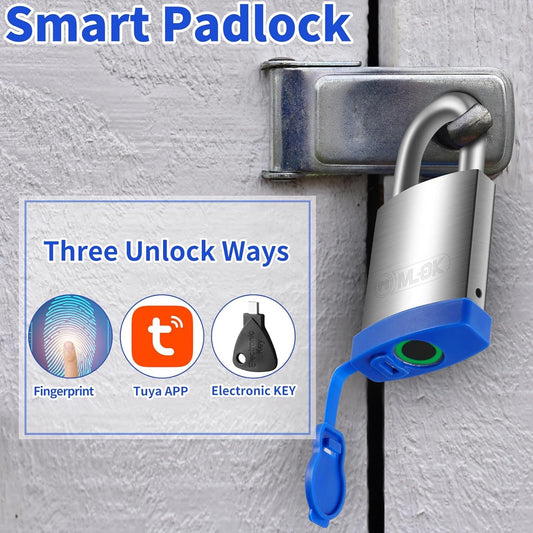 Weatherproof Biometric Bluetooth Smart Padlock with Key for Outdoor Gates, Garages, Warehouses - Pothunder Fingerprint Padlock